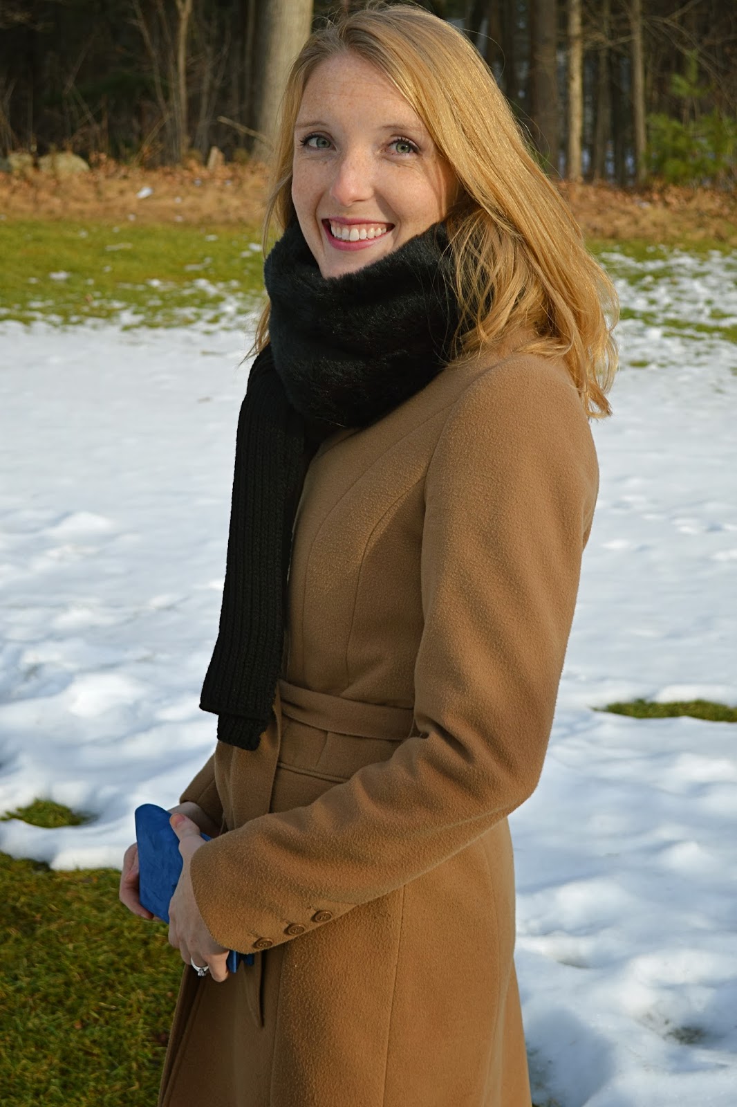 Today I dressed to reflect (unlike my usual desire to reject) the cold weather. This week has been all ups-and-downs from the weather stations predicting no snow, five inches, or a twelve-inch clobber. Regardless of the turnout, the neutral hues of this outfit make me feel prepared. The sky blue Asprey clutch (an incredible birthday gift from Eric) and the muted indigo jeans bring together the earthiness of the H&M camel coat. Topping off the outfit with a hint of fur and a pinch of sparkle creates just enough contrast to avoid a bland neutral look.
