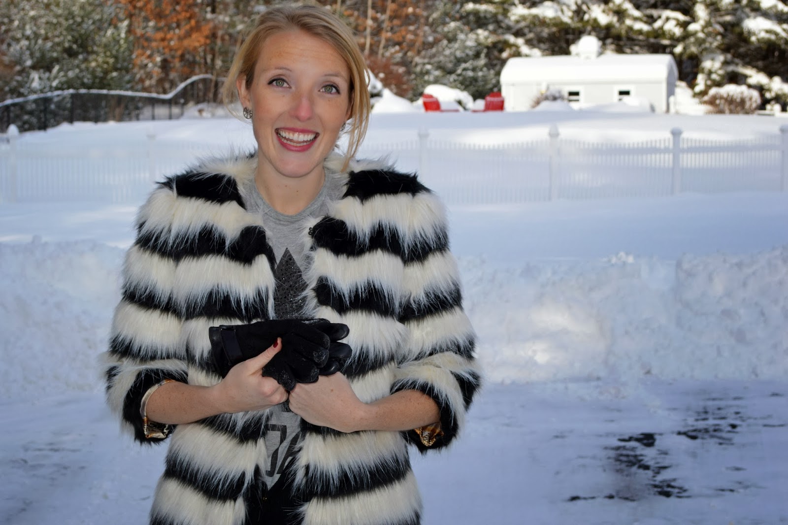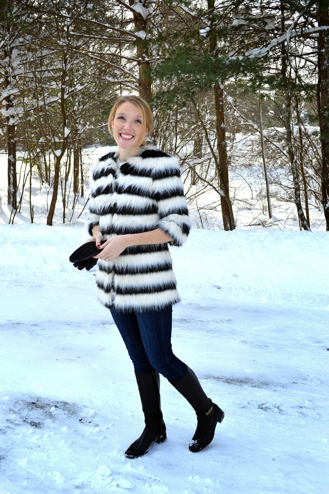 Twenty-six inches of snow and you’re never too old to play in it. This weekend was quite the climate adventure! The recent wardrobe addition of my oasap faux fur coat made the prime snow day piece. I love the striking lines and playful texture that is classy with a side of spunky. While a day off from work calls for the comfort of a brushed cotton tee, I balanced the relaxed top with sleek leather boots. Overall, the balancing act of this outfit allows for winter comfort while maintaining a fashion-forward edge.